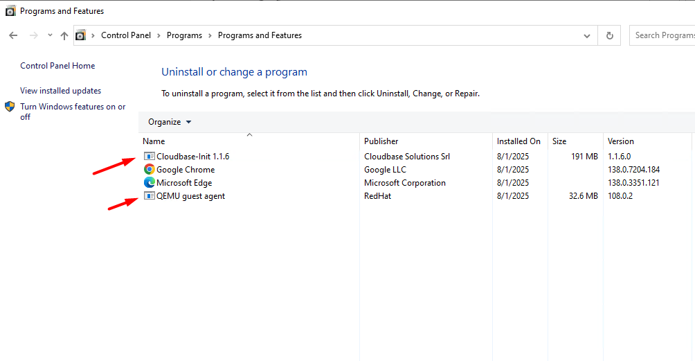 Navigate to Programs and Features via Control Panel. You should see the programs installed pointed by the red arrows in image below.